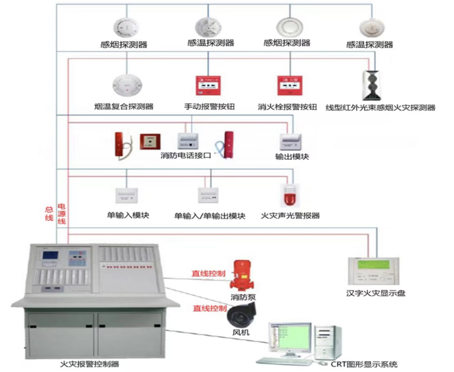 消防联动控制系统由消防联动制器、消防热制室图形显示装置、消防电气控制装置(防火卷帘控制器、气体灭火控制等)、消防电动装置。消防联动模块、消火按钮、消防应急广播设备、消防电话等设备和组件组成。